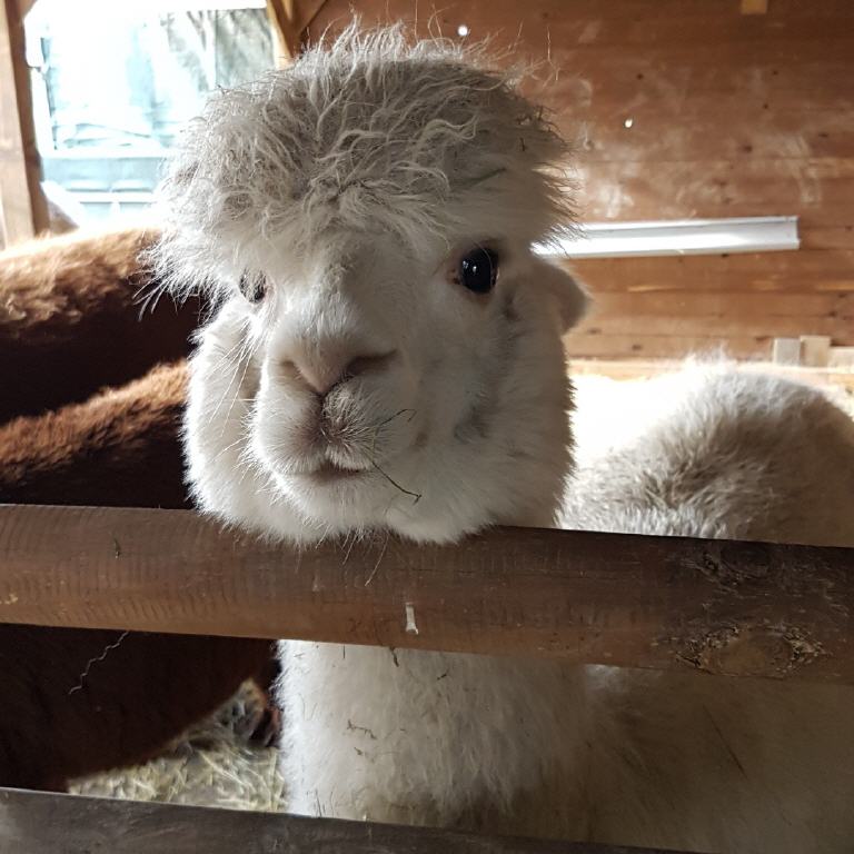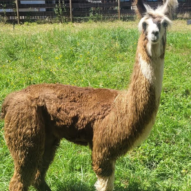 Panda, den wir in Manchado (spanisch: gesprenkelt) umbenannt haben, wurde am 8.6.2022 in den Niederlanden geboren. Als Absetzer kam er mit einigen anderen Alpakas, unter anderem mit Appy, nach Südtirol, wo wir uns in ihn verliebt haben. Am 24.1.2024 ist er mit Appy zu uns gekommen. Beide haben sich schnell und stressfrei in die Herde eingelebt, und wir sind gespannt, wie er sich entwickelt.