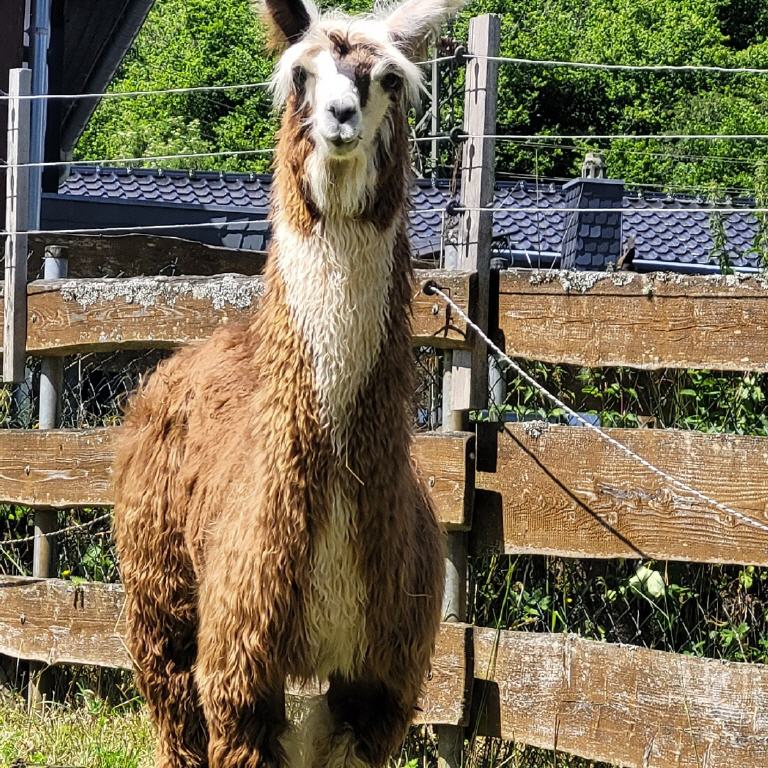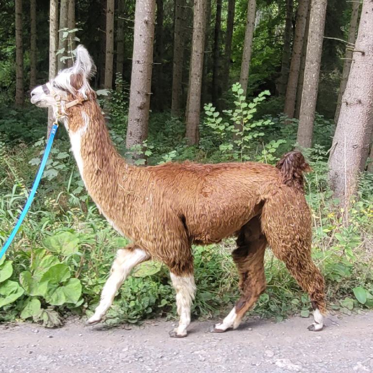Amber wurde am 15.9.2024 in der Eifel bei Nikolai Wirtz geboren. Ihre Mama ist W.N. Zazou (Suri Lama), ihr Papa FS Flannan (Wooly Lama). Sie ist ein Suri-Wooly-Lama. Gemeinsam mit ihrer Halbschwester Thylane ist sie im September 2025 zu uns gekommen. Wir freuen uns sehr darauf, sie in der nächsten Zeit näher kennenzulernen.