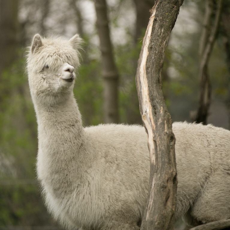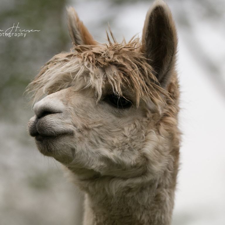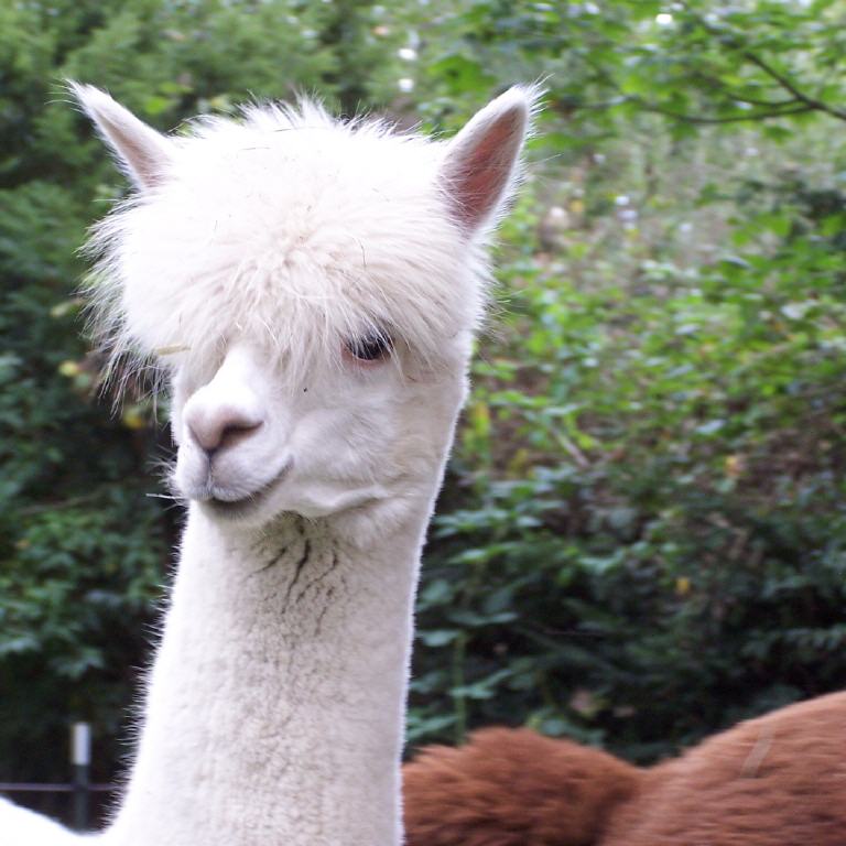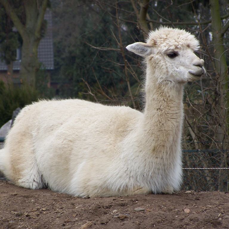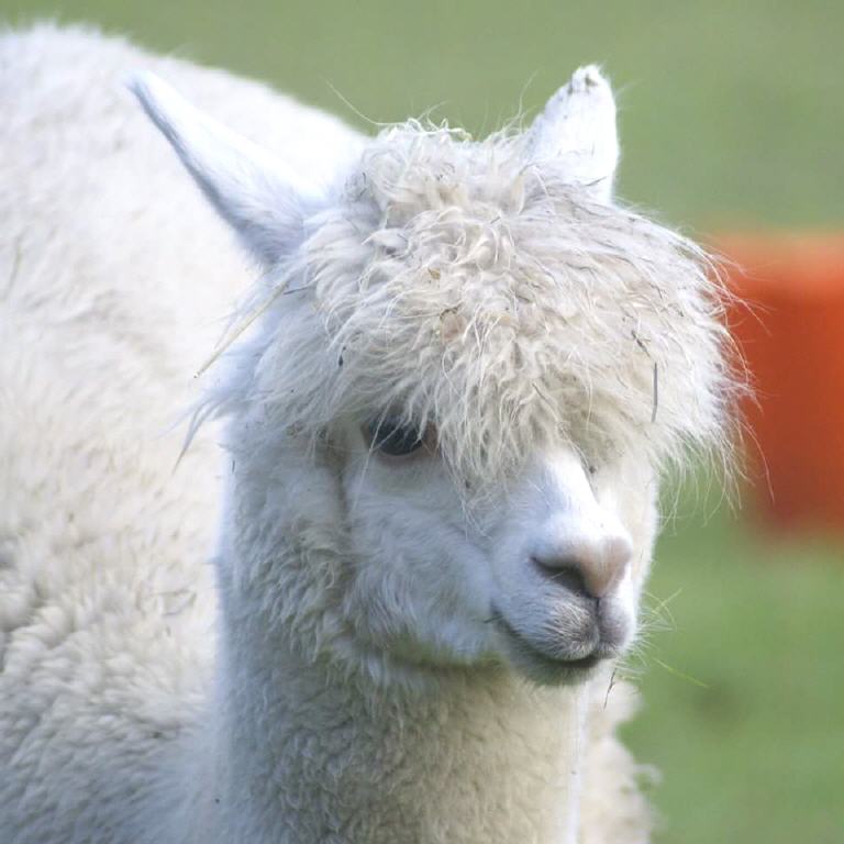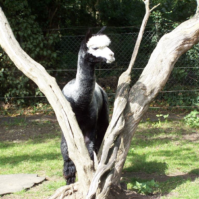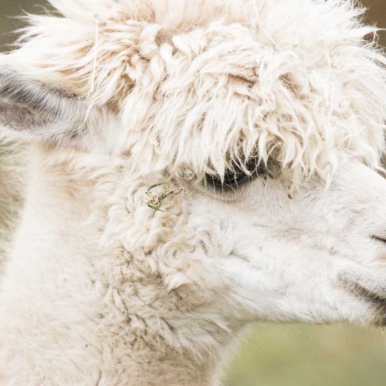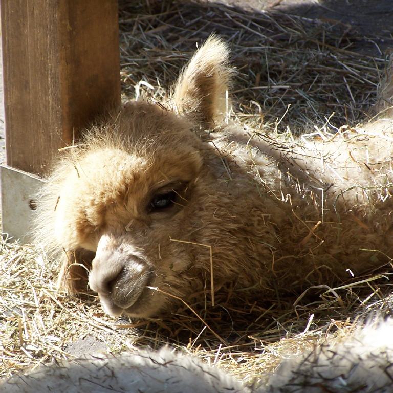 Wenn sie Lust hat, ist sie sehr zutraulich und verschmust, also ein eher untypisches Alpaka. Ansonsten frißt sie gern, hat meist ein wenig "Proviant" im Maul und bleibt bei Regen am liebsten im trockenen Unterstand. Mittlerweile hat sie im Winter eine wärmende Decke an.
