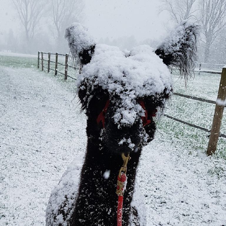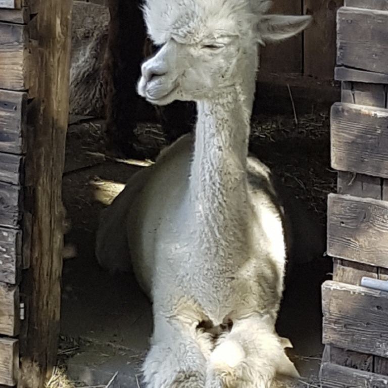 Appy, den wir wegen seiner Färbung in Macchiato umbenannt haben, wurde am 21.6.2022 in den Niederlanden geboren. Als Absetzer kam er mit einigen anderen Alpakas, unter anderem mit Manchado nach Südtirol, wo wir uns in ihn verliebt haben. Am 24.1.2024 ist er mit Manchado zu uns gekommen. Beide haben sich schnell und stressfrei in die Herde eingelebt. Er ist von den beiden der Mutigere, und wir sind gespannt, wie er sich weiter entwickelt. Macchiato ist nun das jüngste Herdenmitglied, hat aber schon eine gute Portion Selbstbewusstsein.