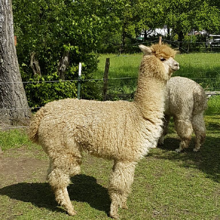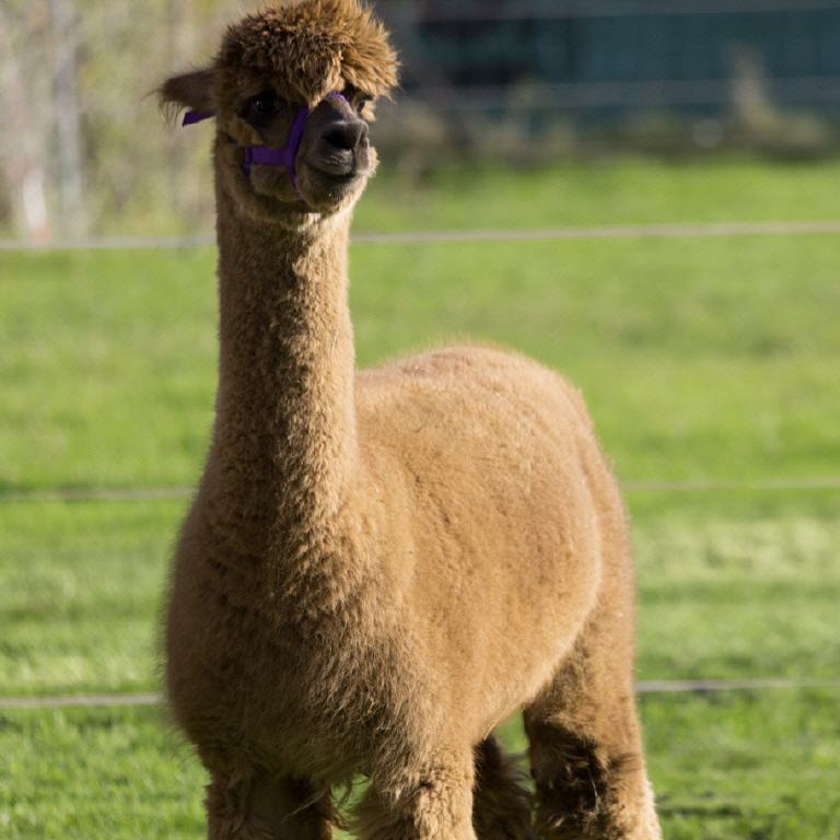 Avellana bedeutet Haselnuss auf Spanisch. Wegen ihrer Farbe haben wir sie so genannt. "Lana" wurde am 12.8.2017 von Sunshine geboren. Sie hat die Farbe ihres Papas Waratah Flats Goldsmith, Alpakas des Westens, geerbt, genau wie wir gehofft hatten. Ihr Geburtsgewicht war 8,6kg. Wenn sie Lust hat, mag sie gestreichelt werden. Aber sie ist auch sehr eigenwillig, wie ihre Mama. Sie hat weiches Vlies mit viel Glanz und Löckchen, das wir zu Schals verarbeiten lassen. Durch denselben Papa ist sie eine Halbschwester von Lima und mütterlicherseits von Merlin.