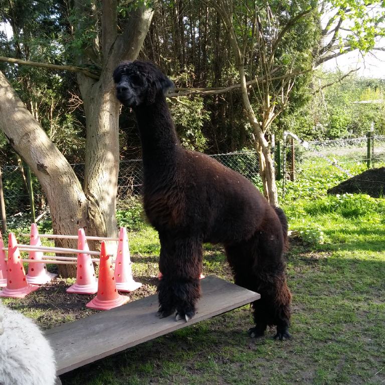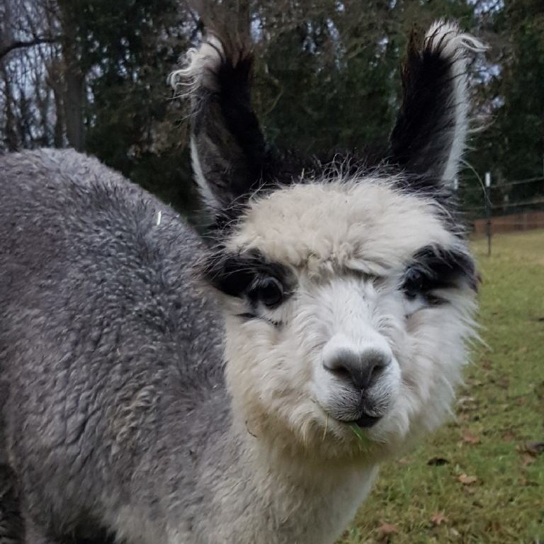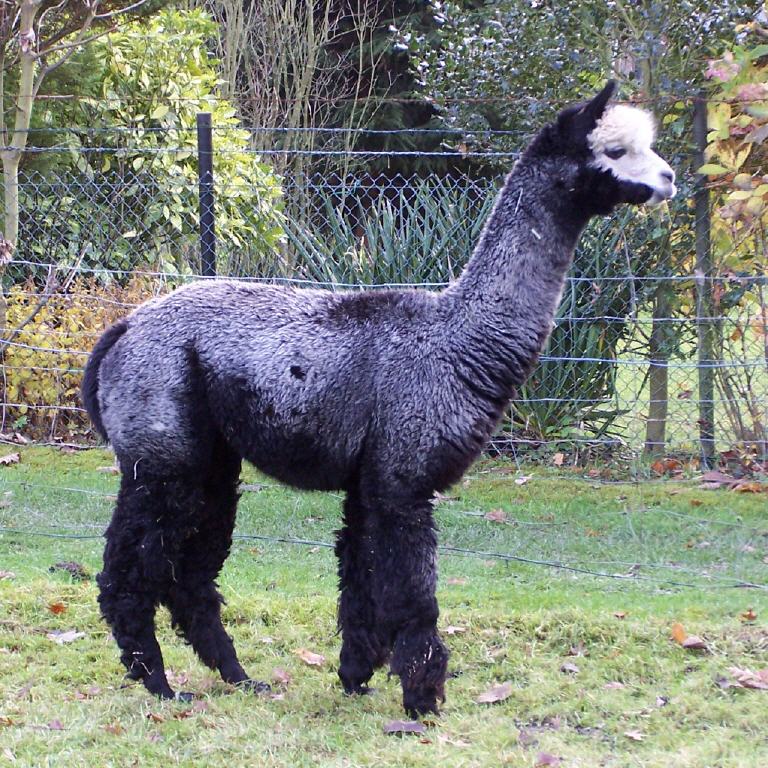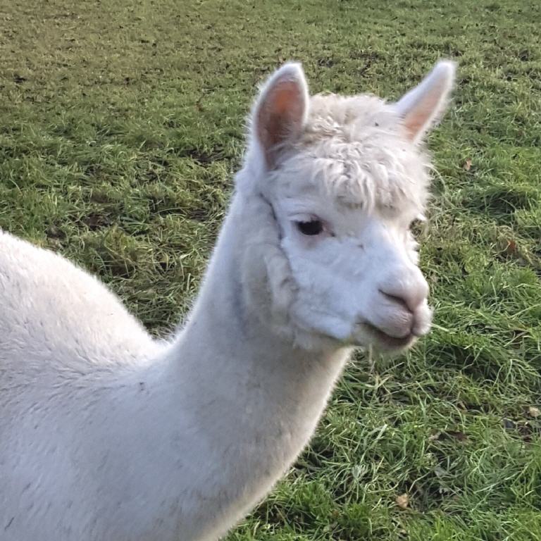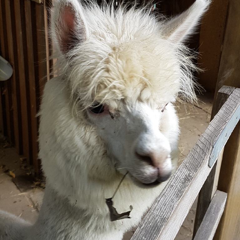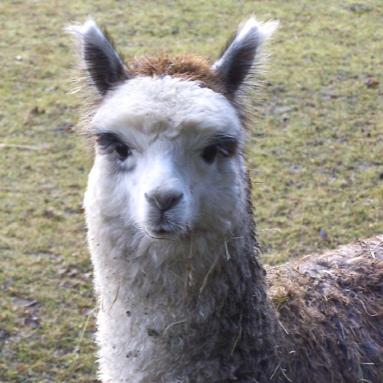 Der Wallach Rapanui, geboren im Juli 2015 bei den Auenland Alpakas, ist im September 2017 zu uns gekommen. Endlich haben wir ein graues Tier, dazu noch mit einer sehr interessanten Zeichnung, die viele Herzen verzaubert. Er geht gern mit auf die Spaziergänge. Dabei ist er interessiert, geht immer hinten an seiner Lieblingsposition.