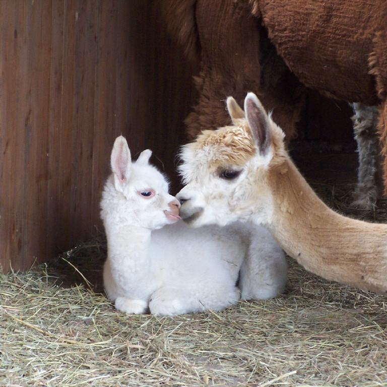 Sunshine hat Merlin am 17.8.2016 um 10.15 Uhr mit 7,6 kg zur Welt gebracht. Merlins Papa ist ADW Frilander von Alpakas des Westens, Windeck.